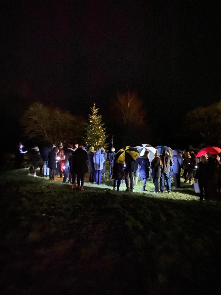 How lovely to see so many villagers surrounding our first ever Christmas tree in Leckhampstead. On Thursday 22nd December 2022 we celebrated Christmas with Miri Keen who led a carol service around the Christmas tree. Despite the rain, we were delighted to be joined by 55 villagers, sharing this festive experience.